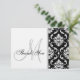 Obrigado preto e branco personalizado do casamento tema damasco você cartões com texto inicial e preto cinzento do monograma em um fundo branco. Personalize com seu monograma, obrigado texto, nomes do newlywed e cores do casamento. Adicione um obrigado impresso você mensagem na parte de trás do cartão usando alertas fáceis de usar do menu de Zazzle ou deixe-o vazio à mão escrevem seu obrigado que você nota. Damasco lindo e design elegante da inicial do monograma que trabalha para todas as letras do alfabeto e de paletas de cores. Design da disposição pelo © de Elke Clarke. Gráficos licenciados. Contacte luxuryweddinginvitations@gmail.com para a ajuda com criar o "dia" de artigos do casamento para combinar este teste padrão.