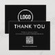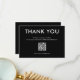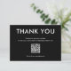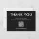 Simples cartões de agradecimentos preto e branco elegante. Texto personalizável para que as empresas obrigados seus clientes. Código QR e espaço para o seu logotipo.