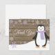 Cartões de agradecimentos Rústico de Pinguim de inverno com Floco de Neve. Pinguim Roxo. Fundo Da Madeira Rústica. Campo de Vintage Retro Barn. Floco de neve roxo. Amor e Obrigados, bela fonte de roteiro. Adicione sua mensagem de volta ou deixe vazio e escreva à mão. Para mais personalização, clique no botão "Personalizar" e use a ferramenta design para modificar este modelo.