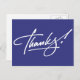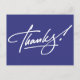 Escrita manual moderna Obrigado Cartões postais em Royal Blue. Perfeito para Casamentos, Aniversário, Natal, Chás ou qualquer outra ocasião. Cartões postais Royal Blue 'Obrigado', se necessário, escolha qualquer outra cor ou adicione seu próprio texto impresso, endereço ou nome da empresa na guia "Personalizar".