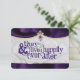 Eles viveram felizes para sempre e obrigado a tipografia com chapéu e véu. Dourado treinador com aparência de veludo ultra violeta, cortado com uma corrente de enlace dourado, sotaque decorativo de ouro branco e opções de cor de fundo damascos brancos. Arte em camadas também pode ser reposicionada se quiser. O filtro editável aplicado à carruagem de ouro e ao caimento confere-lhe um efeito mais leve de ouro branco.