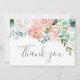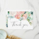 Este cartões de agradecimentos romântico de flores de pénia é perfeito para um casamento elegante. O design floral apresenta flores cor-de-água, cor-de-rosa-claro, cor de pêssego e branca em cascata. Personalize o cartão com a mensagem e os nomes do seu obrigado.