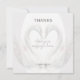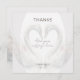Os cisnes adoram a frente e trás deste cartões de agradecimentos de casamento fornecendo uma estética romântica. Apresentando tons suaves de cor branca e prata escura. Basta adicionar seus monogramas, detalhes e mensagem especial. Excelente para casamentos e ocasiões especiais. Use a modelo para criar seu próprio cartões de agradecimentos romântico de casamento do cisne.