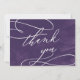 Este cartões de agradecimentos romântico de casamentos de cor d'água roxa é perfeito para um casamento simples. O clássico design moderno apresenta espirais ricos e turbilhões brancos com magnífica e elegante tipografia à mão num fundo de aquarela roxo. Essas cartas podem ser usadas para um casamento, chá de panela ou qualquer evento especial.