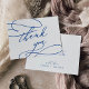 Este cartões de agradecimentos de casamento romântico azul-safira é perfeito para um casamento simples. O clássico design moderno apresenta espirais ricos e turbilhões brancos com magnífica e elegante tipografia à mão. Personalize a parte traseira do cartão com seus nomes e uma mensagem de obrigado. Como alternativa, deixe o vazio da seção modelo para enviar uma nota personalizada e ponderada em cada cartão após a sua chegada. Essas cartas podem ser usadas para um casamento, chá de panela ou qualquer evento especial.