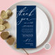 Compartilhe o amor e mostre seu apreço aos seus convidados, quando eles se sentarem em seu assento e lerem esse obrigado encantador personalizado que você coloca no cartão (Obrigado) Janto Lunch Brunch comemoração no tema azul marinho. É uma maneira maravilhosa de acabar com a sua celebração especial de dia! Este cartão define o tom de um evento inesquecível. O cartões de agradecimentos apresenta o tema moderno da design, acrescentando um toque de elegância do eterno à sua celebração. Projetado por TeeshaDerrick