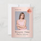 Um cartões de agradecimentos de fotos de formatura. Uma cor de fundo rosa dourada. Na frente: Personalize e adicione uma foto de tamanho vertical, um nome, ano e nome da escola. Com o texto: Formando e Obrigado. Decorado com um boné moderno e abstrato com o dentro. Voltar: adicione sua foto de segundo, sua nota de agradecimento e seu nome. O nome é escrito com um moderno estilo escrito à mão.
