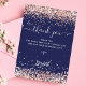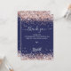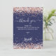 Um fundo azul marinho, decorado com um confete ouro rosa. Escrito escrito em grande mão e texto: Obrigado. Personalize e adicione sua nota de agradecimento e seu nome.