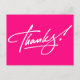 Escrito manual moderno Obrigado Cartões postais em Rosa Quente. Perfeito para Casamentos, Aniversário, Natal, Chás ou qualquer outra ocasião. Cartões postais com cor rosa quente 'Obrigado', se necessário, escolha qualquer outra cor ou adicione seu próprio texto impresso, endereço ou nome da empresa na guia "Personalizar".