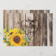 Madeira russa com gravura cardíaca e cartões de agradecimentos de buquê de girassol.