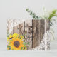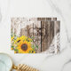 Madeira rústica com rendas brancas e estrias cardíacas e cartões de agradecimentos de buquê de girassol.