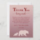 Envie uma doce nota de gratidão com este adorável cartões de agradecimentos chá de fraldas! Apresentando uma charmosa silhueta de mamã e ursinho de bebê com um estilo rústico de floresta, é a maneira perfeita para amigos e familiares obrigados celebrarem seu dia especial. Um design aconchegante e sincero que duplica como um guardião para os hóspedes.