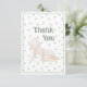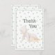 Bebê crawling de aquarela branca rodeado por um simples padrão de folha verde. Tipografia "Obrigado". Adicione sua mensagem no verso. Misture e combine com outros designs para o seu dia especial.