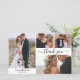 Casamento de Script de Colagem de Foto Moderno 4 Elegante e Minimalista Obrigado barato cartão fino de baixo orçamento. modelo de obrigado de na moda com quatro fotos na frente e uma foto na parte de trás. Com o texto "Obrigado" em uma fonte de tipografia ou de escrita caligráfica, escrita à mão, com inchaço ou a preto sobre fundo branco. ***POR FAVOR, NOTE! *** O PAPEL ORÇAMENTAL/FLYER É MAIS FINO DO PAPEL. *** ATUALIZE O PAPEL PARA UM PAPEL MAIS ESPESADO. *** Um pouco de coração amoroso entre os nomes. Adicione o seu nome e obrigado à sua mensagem. Se preferir escrever manualmente a sua nota, basta eliminar o texto de amostra para obter mais espaço. Se precisar de ajuda ou item correspondente, entre em contato com o designer! Escolha excelente para casamento com baixo orçamento.
