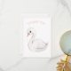 Cisne branco de aquarela em um simples fundo branco. Uma nota de "obrigado" que qualquer convidado adoraria receber. Adorável.