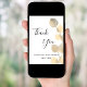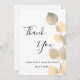 Um cartões de agradecimentos para um aniversário de 50 anos (ou qualquer idade). Um fundo branco chic decorado com eucalipto ouro. Na frente, um grande script de cor preta, escrito à mão, e o texto: Obrigado, seu texto, título e uma data. Voltar: Personalize e adicione seu nome e nota de agradecimento.