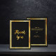 Um fundo preto clássico, decorado com quadros falsos de ouro. Escrito escrito em grande mão e texto: Obrigado. Personalize e adicione sua nota de agradecimento e seu nome.