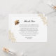 Este é um elegante cartões de agradecimentos de graduação com um design floral de ouro com sotaques delicados e uma fonte sofisticada de escrita. O layout inclui texto personalizável para o nome do formando e uma foto no verso. Uma pequena ilustração de boné de formatura acrescenta um toque comemorativo. Perfeito para comemorações formais e de na moda.