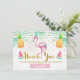 Este obrigado do chá de fraldas da aguarela do flamingo você cartão liso pode ser usado para outras ocasiões também. As características de design um flamingo cor-de-rosa e algumas folha e fruta tropicais em uma aguarela branca da textura forram o fundo da imagem. É uma maneira bonita de agradecer-lhe convidados do chá de fraldas. O mesmo convite do chá de fraldas do design está igualmente disponível na loja. Estes cartões de agradecimentos do flamingo estão prontos para ser personalizado.