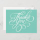 Cartões postais manuscritos de rico 'Obrigado' em Turquesa. Perfeito para Casamentos, Aniversário, Natal, Chás ou qualquer outra ocasião. Cartões postais de cor turquesa 'Obrigado', se necessário, escolha qualquer outra cor ou adicione o seu próprio texto impresso, endereço ou nome da empresa na guia "Personalizar".