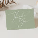 Apresentando nosso impressionante roteiro caprichoso sábio verde-dobrado cartões de agradecimentos perfeito para sua simples celebração do primavera boho. Nosso elegante design inclui uma paleta de cores vibrante brilhante e pastel com um script de caligrafia quic vintage. Quer você prefira um estilo minimalista ou clássico, nosso produto editável exclusivo oferece luxo e elegância, perfeito para criar um toque clássico, ainda que romântico, para tornar seu dia especial inesquecível. Contacte-nos com quaisquer perguntas sobre o design, e deixe-nos ajudá-lo a fazer o casamento dos seus sonhos.