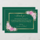 cartões de agradecimentos de ouro e verde-esmeralda personalizado. Personalize facilmente este elegante cartões de agradecimentos floral com rosas e rosas cor-de-rosa e fontes modernas de script. Itens correspondentes disponíveis para complementar o cartões de agradecimentos de casamento esmeralda e ouro.