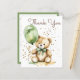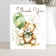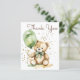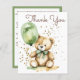 Ursinho de pelúcia, aguardando cartões de agradecimentos verde-sábio e chá de fraldas castanho, ursinho de pelúcia agudo com arco, balões verdes, balões de areia e ouro borrifados