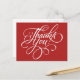 Rico manuscrito Obrigado cartões postais no Red de Natal. Perfeito para Casamentos, Aniversário, Natal, Chás ou qualquer outra ocasião. Cartões postais de cor vermelha natalícia 'Obrigado', se necessário, escolha qualquer outra cor ou adicione seu próprio texto impresso, endereço ou nome da empresa na guia "Personalizar".