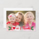 Envie sua gratitude à família e aos amigos esta época natalícia com uns cartões de agradecimentos personalizados da foto. As características deste design festivas esverdeiam o azevinho com um roteiro vermelho sobre sua própria foto. O sentimento lê "L♥ve & obrigados". Substitua a foto mostrada com seus próprias para esse de um design amável que seus família e amigos adore! Suporte do cartão tem sua assinatura no vermelho com nome e nomes de família para você personalizar. Projetado pelo © Susan Coffey do artista. Estúdios de Storytree do © da fotografia, Stanford, CA.