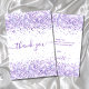 Um cartões de agradecimentos de aniversário feminino e elegante. Um fundo branco chic. Com pó púrpura e falso. Na frente, o texto escrito em letras grandes e o texto: Obrigado. Voltar: Personalize e adicione seu nome e nota de agradecimento. O nome é escrito com um moderno estilo escrito à mão com traços. Para manter as hastes, exclua apenas o nome da amostra, deixe os espaços ou emoji na frente e depois do nome.