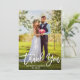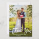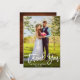 Cartões de agradecimentos Fotográfico de Casamento do Script de Pincel Moderno - Script Branco, Madeira Rústica De Volta
