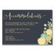 Cartões de alojamento para casamentos, com flores amarelas e texto personalizável impresso em fundo escuro