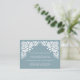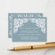 Projetado para coordenar com nossa coleção de casamento Beaux Arts em Tourmaline, as cartas apresentam letras brancas em um fundo azul de ardósia, acentuado com estilo branco sujo e detalhado nos cantos.