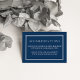 Vire essas cartas para seus convites para deixar os convidados da cidade saberem de qualquer acordo de hotel ou códigos de grupo. Os cartões azuis náuticos ricos apresentam uma elegante inscrição em bloco branco. Coordena-se com a nossa suíte de convite para casamento das Ondas do Oceano.