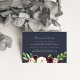 Vire essas cartas para seus convites para deixar os convidados da cidade saberem de qualquer acordo de hotel ou códigos de grupo. Projetado para coordenar com a nossa coleção de casamento Blush Romance e Midnight Romance, as cartas contêm letras brancas com um spray de flores a aquarelas em rosa-penteado, marfim e burgundy marsala com folhagem botânica verde-esfaita sobre um rico fundo azul-marinho.