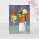 Um cartão de aniversário com uma pintura original a óleo pastel de um jarro de flores de parede multicoloridas.