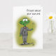 Cartão de aniversário engraçado com uma ilustração engraçada de um sapo máfia com uma mensagem humorística.