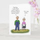 Um cartão de boas-vindas engraçado para o Aniversário com uma ilustração engraçada de um velho casal falando sobre molhar suas calças com a mensagem dentro ser bom ver que compartilhar o banheiro não é um problema.