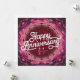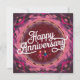 "Matizes vibrantes de rosa e roxo criam um pano de fundo celebratório, enfeitiçado com pontos semelhantes a confetti. No centro, a elegante fonte branca e cursiva expõe "Feliz Aniversário". Duas figuras estilizadas dão as mãos, acrescentando um toque pessoal. Perfeito por comemorar um marco especial na relação!"