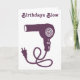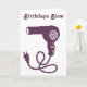 Cartões de aniversário Secador de cabelo roxo com