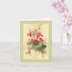 Um cartão de cumprimentos da era vitoriana com belas mendiconias vermelhas para um amado no seu aniversário. A inscrição diz Cartões de aniversários. Personalize com seu próprio texto. Vintage retro bonito e legal colorido artístico original criativo único e elegante floral ainda com vida decorativa.