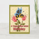 "Um feliz aniversário de Bee" - um cartão de saudação colorida e personalizável para enviar seus desejos de aniversário tardios. Uma bela abelha folkart pousando em um casal de tulipas cor-de-rosa. Altere/personalize o verso e adicione uma mensagem de fechamento pessoal.
