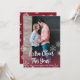 Cartões de Anúncio de Gravidez de Natal. Esperando pais! A tipografia moderna com letras brancas "Extra Cheer this year!" escreveu um cartão para compartilhar suas boas notícias com a família e os amigos na temporada de festas. No fundo vermelho-colorido com flocos de neve brancos. Você pode personalizar o design substituindo o texto do exemplo e a foto vertical. #3343 Se precisar de ajuda ou itens correspondentes, entre em contato comigo!