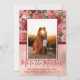 Cartões de Anúncio de Gravidez de Natal. Esperando pais! Rosa vermelha com folhas verdes, design, coloração vermelha-rosa, cor-de-rosa, cor-de-rosa-rosa-rosa, apresenta texto tipográfico com letra de mão "mais o melhor" sobre fundo floral vitoriano e bloco de folha de ouro rosa. Cartão elegante para compartilhar suas boas notícias com a família e os amigos na temporada de festas. No fundo da rosa vermelha cor-de-rosa, fundo floral. Você pode personalizar o design substituindo o texto e a foto vertical. Perfeita menina, design romântica para todas as ocasiões. Se precisar de ajuda ou de itens correspondentes, entre em contato comigo. 3346