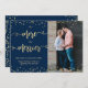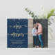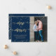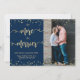 Cartões de Anúncio de Gravidez de Natal Dourado Azul. Esperando pais! O moderno e robusto roteiro tipográfico escrito manualmente "quanto mais o melhor" para compartilhar suas boas notícias com a família e os amigos no feriado. Recursos acima e o quadro de configuração ouro inferior em fundo azul marinho escuro. Você pode personalizar a design substituindo os textos simples e a foto vertical. #3351 Se precisar de ajuda ou itens correspondentes, entre em contato comigo!