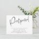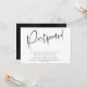 Cartão de anúncio de Nova Data de casamento adiado, Simples roteiro de caligrafia moderna. Design minimalista manuscrito para uma mudança de planos.