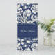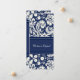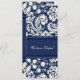 Cartões de anúncio em elegante azul escuro marinho e creme de cor damasco floral clássica branca, totalmente personalizável com seus nomes e detalhes de casamento, a maneira perfeita de anunciar sua eleição para amigos e familiares. Disponível em uma grande variedade de produtos de casamento correspondentes.