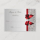 Cartões de assento simples, vermelhos e prateados, personalizados, com uma bela gliteria, gravada sequências de imagens prateadas joias, padrão de joias, arco vermelho brilhante e sofisticado e fita vermelha brilhante, e joia bonito de bling de diamante digital com texto de cinza em um fundo gradiente prateado. Se precisar de assistência para personalizar seu produto, entre em contato comigo através da minha loja e eu ficarei feliz em ajudar. NOTA: Estes são gráficos impressos - não arcos reais, joias ou sequências. Tenho produtos correspondentes na minha loja.