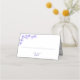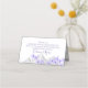 Placa de água do lilás roxo e da corda d'água da montanha para sentar seus convidados. Cartão de lugar dobrado de casamento de lavandas e cinzas, com linha para nomes de escrevendo manual e número de tabela, nomes personalizados e mensagem no verso.