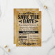 Cartões planos de aviso de data de casamento com tema country ocidental rústico e retrô, ótimos para um casamento casual ao ar livre no verão. Fundo bege desgastado com decorações de tema antigo.